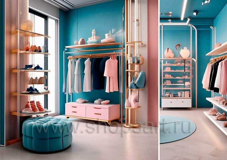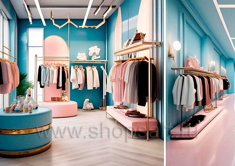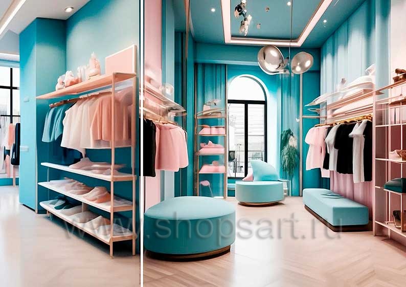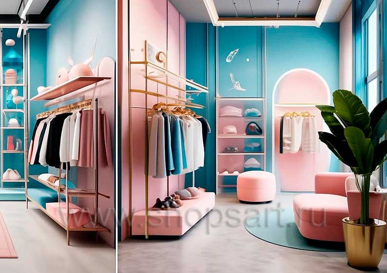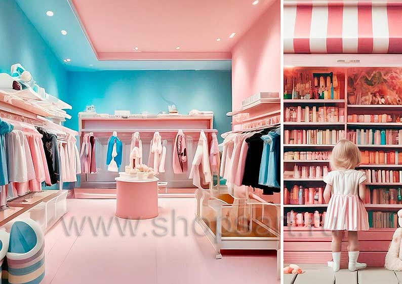 Компания ООО Искусство интерьеров изготавливает стильное торговое оснащение. Так, коллекцию «Розовая фантазия» удобно применять для презентации детских товаров. Серия состоит из функциональных конструкций, обеспечивающих грамотную выкладку ассортимента. Дизайн интерьера 2 детского магазина на основе торгового оборудования РОЗОВАЯ ФАНТАЗИЯ является примером продуманного использования пространства в коммерческом помещении. Практичная и стильная торговая мебель помогла выполнить эффектную демонстрацию товаров.