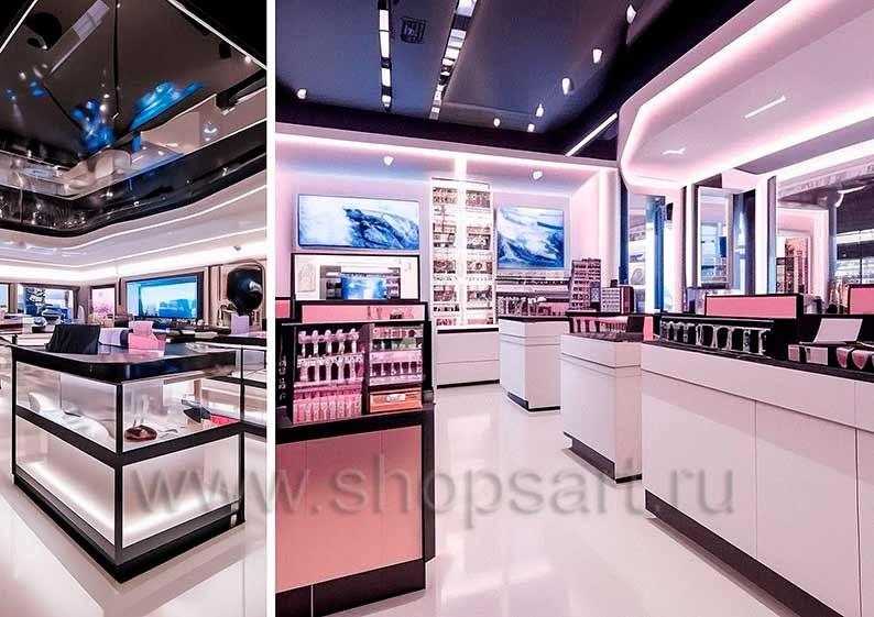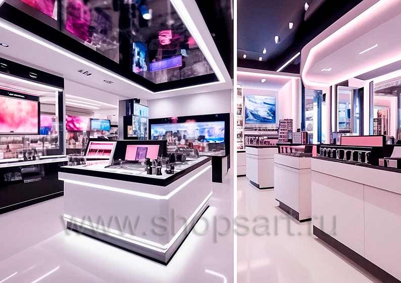 На этой странице Вы можете ознакомиться с дизайном интерьера и дизайном торговой мебели 2 магазина косметики на основе коллекции торговой мебели «ПУДРА». Разработала дизайн магазина косметики и дизайн торгового оборудования компания ООО «Искусство интерьеров». Узнать больше о наших коллекциях торговой мебели для косметики Вы можете на странице оборудования для магазина косметики.