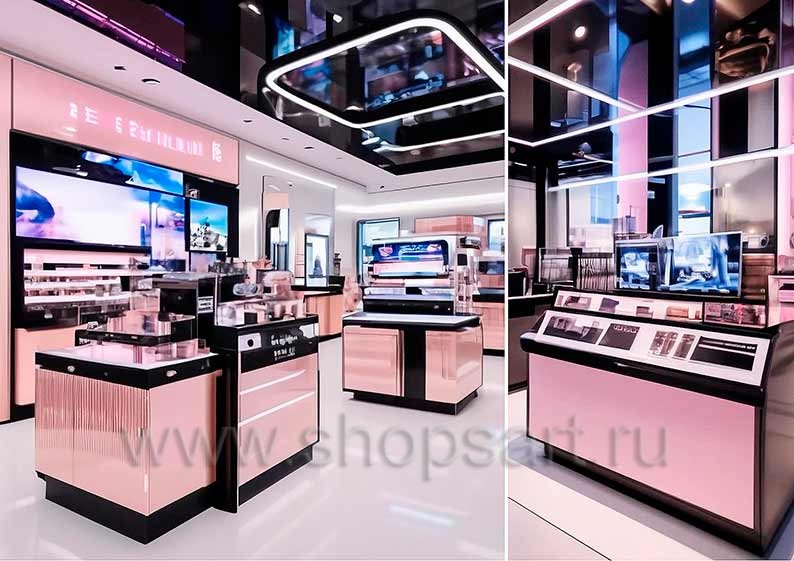 Торговое оборудование для магазинов косметики на основе коллекции ПУДРА