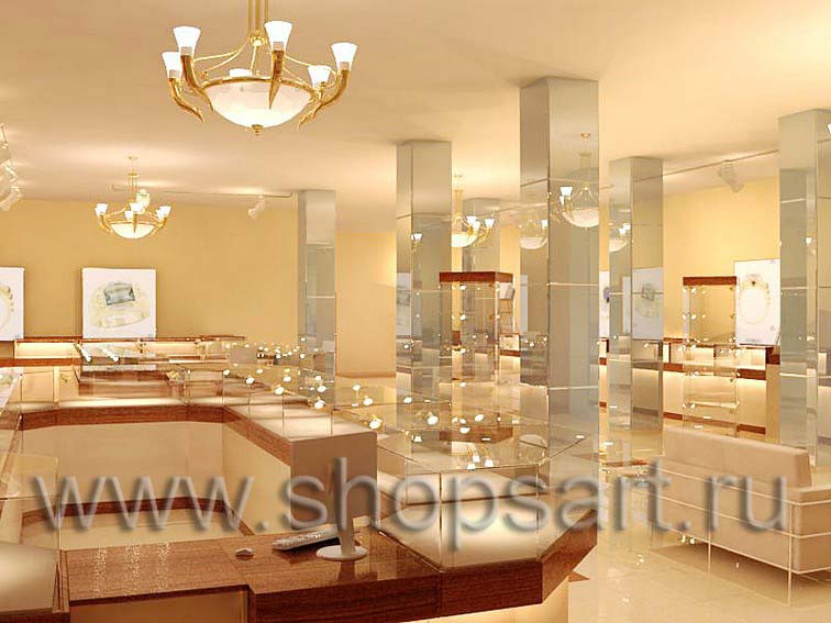 Дизайн проект ювелирного магазина на основе коллекции торгового оборудования КОФЕ С МОЛОКОМ