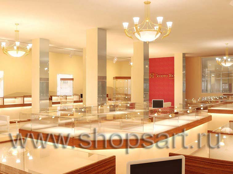 - Дизайн интерьера 2 ювелирного магазина “Золото Якутии”, г. Якутск, на основе коллекции торгового оборудования «КОФЕ С МОЛОКОМ». Дизайн 01.