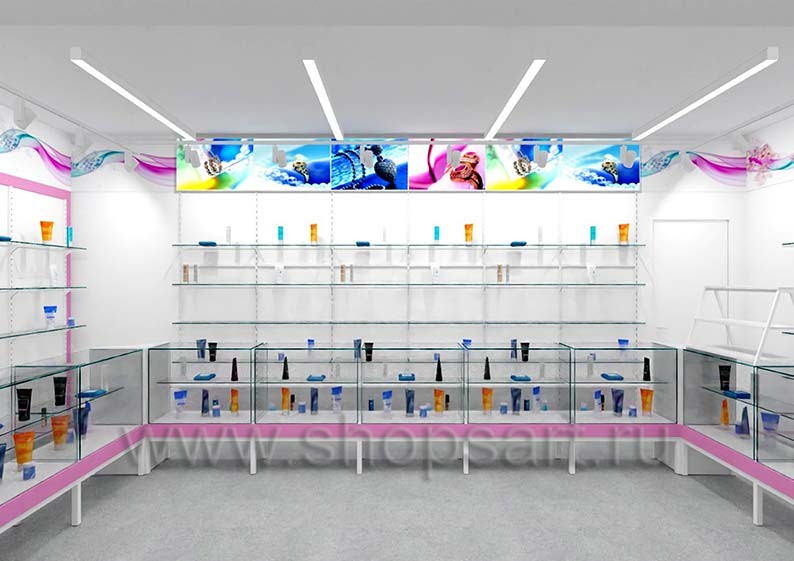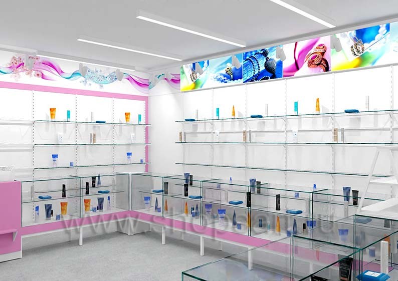 Торговое оборудование для магазинов косметики на основе коллекции РОЗОВАЯ ЛИНИЯ