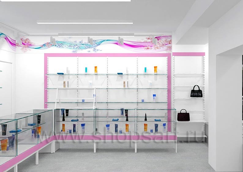 Торговая мебель для магазинов косметики коллекции РОЗОВАЯ ЛИНИЯ