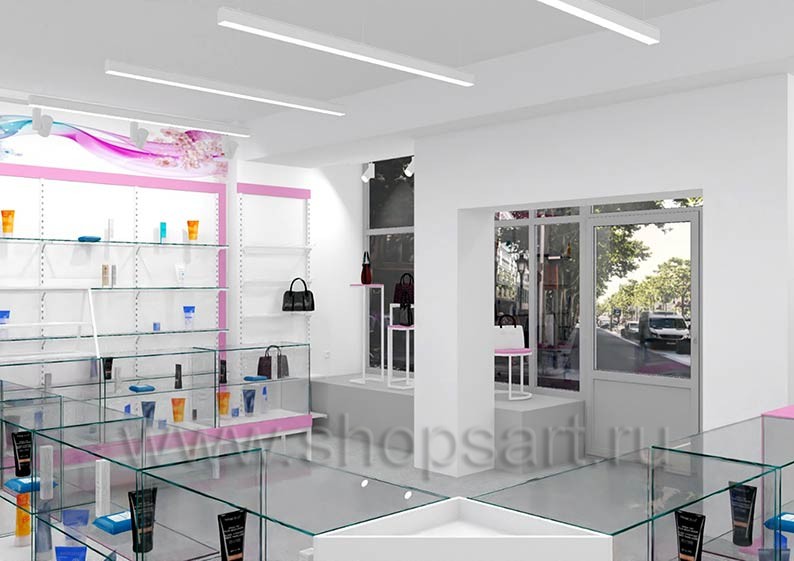 На этой странице Вы можете ознакомиться с дизайном интерьера и дизайном торговой мебели 3 магазина косметики на основе коллекции торговой мебели «РОЗОВАЯ ЛИНИЯ». Разработала дизайн магазина косметики и дизайн торгового оборудования компания ООО «Искусство интерьеров». Узнать больше о наших коллекциях торговой мебели для косметики Вы можете на странице оборудование для косметики.