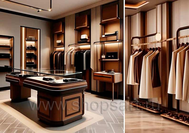 Торговая мебель для магазинов мужской одежды коллекции МУЖСКОЙ СТИЛЬ