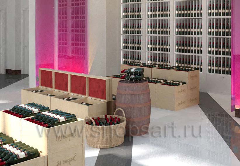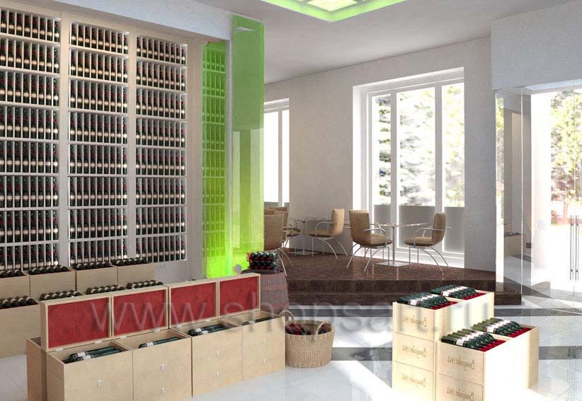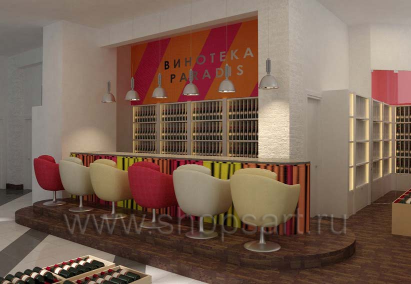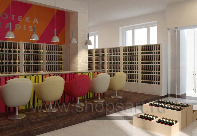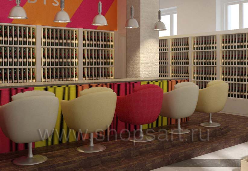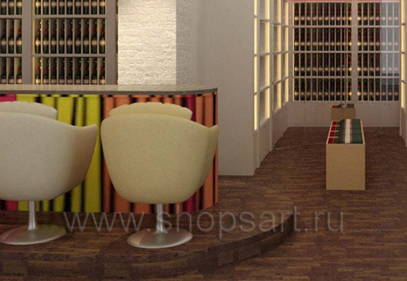 На этой странице Вы можете ознакомиться с дизайном интерьера бара для винотеки. Разработала дизайн помещения и дизайн мебели компания «Искусство интерьеров». Узнать больше о наших коллекциях мебели для магазинов Вы можете на странице торгового оборудования для магазинов.