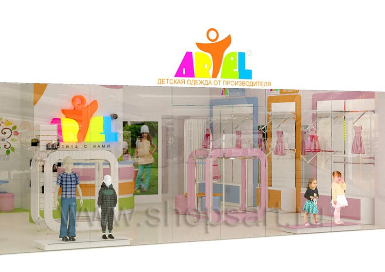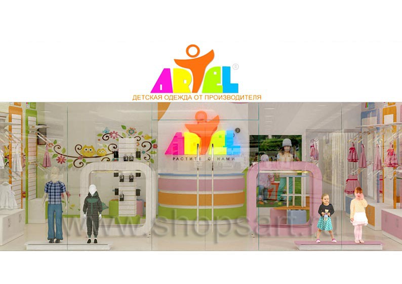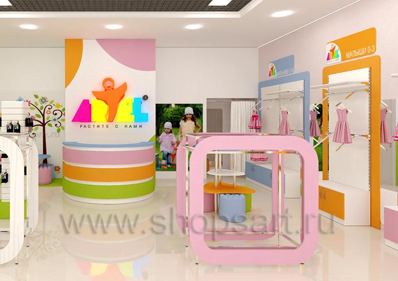 Дизайн-проект детского магазина одежды «ARTEL», г. Нижний Новгород, на основе коллекции торгового оборудования «АКВАРЕЛИ»