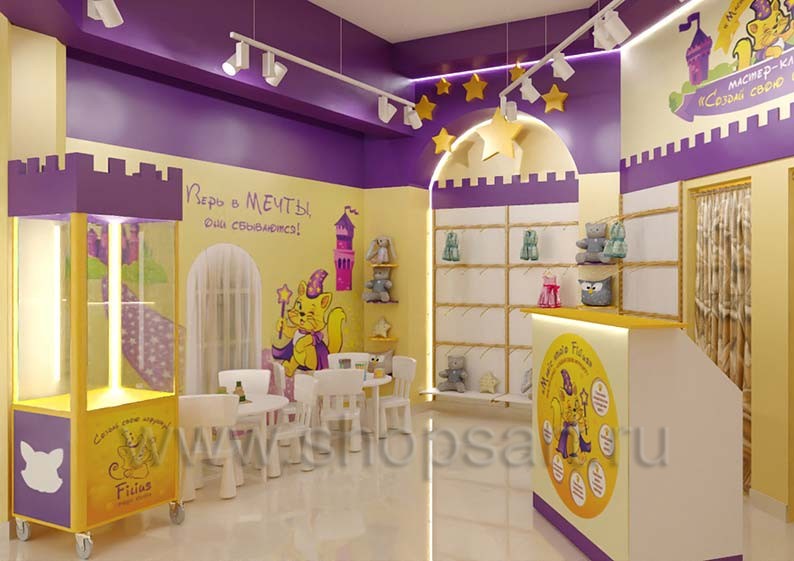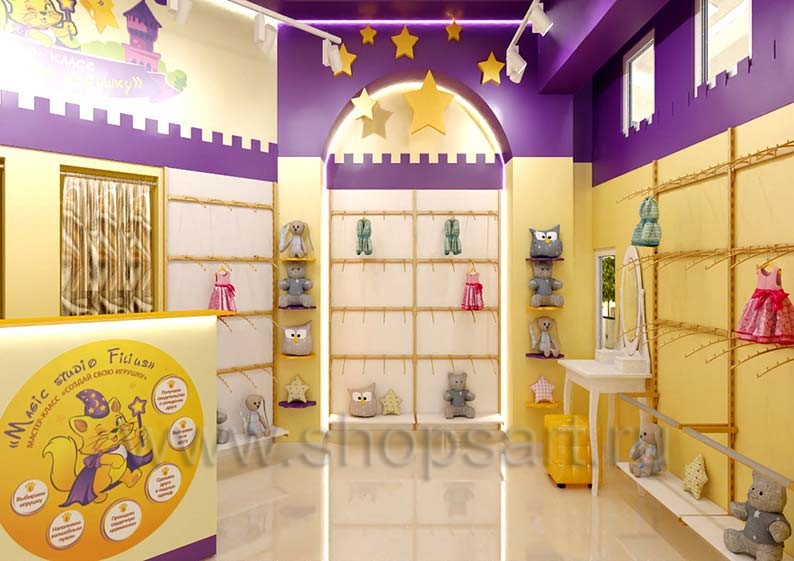 На этой странице Вы можете ознакомиться с дизайном интерьера для сетевого детского магазина игрушек: Мастерская мягких игрушек кота Филиуса «Magik Studio Filius», находящегося в ТРК “Гранд Каньон” Дивный город, 3 этаж, город Санкт-Петербург, проспект Энгельса, дом 154, на основе коллекции торгового оборудования «МАМИН ДОМ». Разработала дизайн магазина и дизайн торгового оборудования компания «Искусство интерьеров». Узнать больше о наших коллекциях оборудования для детских магазинов Вы можете на странице мебели для магазинов детских товаров.