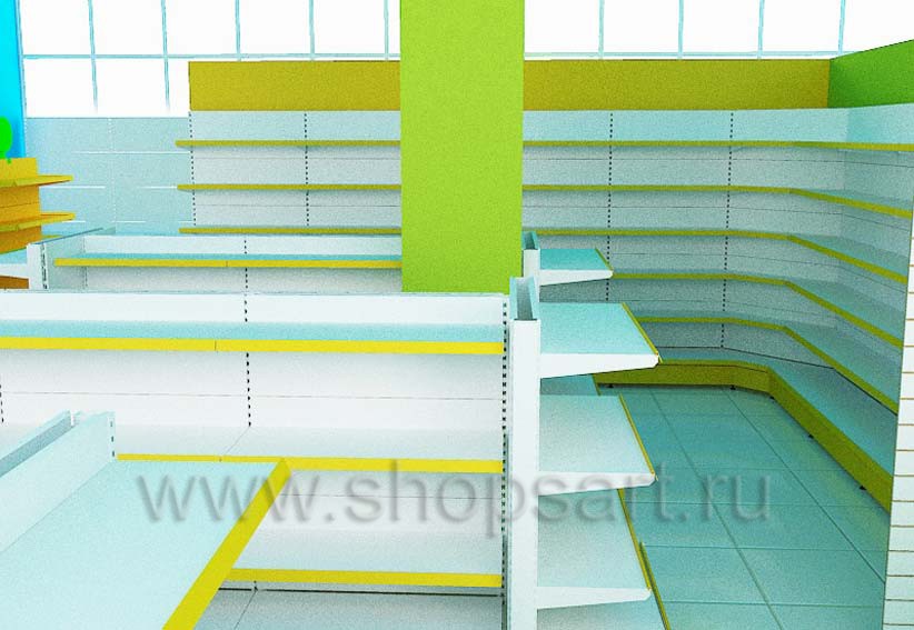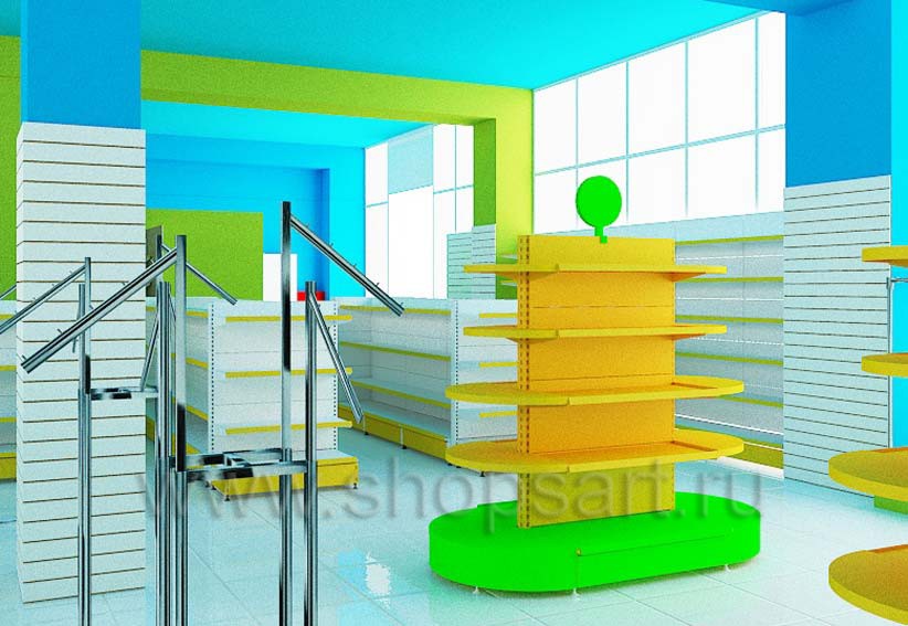Торговое оборудование для детских магазинов на основе коллекции ЦВЕТНЫЕ МЕТАЛЛИЧЕСКИЕ СТЕЛЛАЖИ