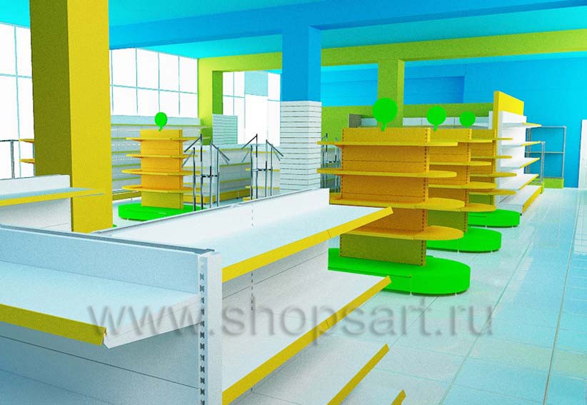 Торговая мебель на основе коллекции Цветные металлические стеллажи