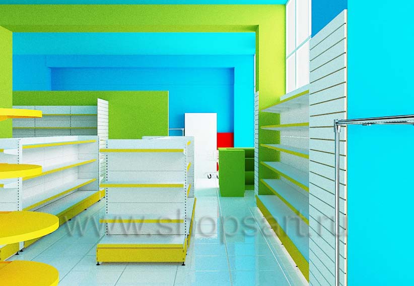 На этой странице Вы можете ознакомиться с дизайном интерьера детского магазина, на основе коллекции торгового оборудования «ЦВЕТНЫЕ МЕТАЛЛИЧЕСКИЕ СТЕЛЛАЖИ». Разработала дизайн магазина и дизайн торговой мебели компания «Искусство интерьеров». Узнать больше о наших разработках в области дизайна детских магазинов Вы можете на странице дизайна интерьеров детских магазинов.