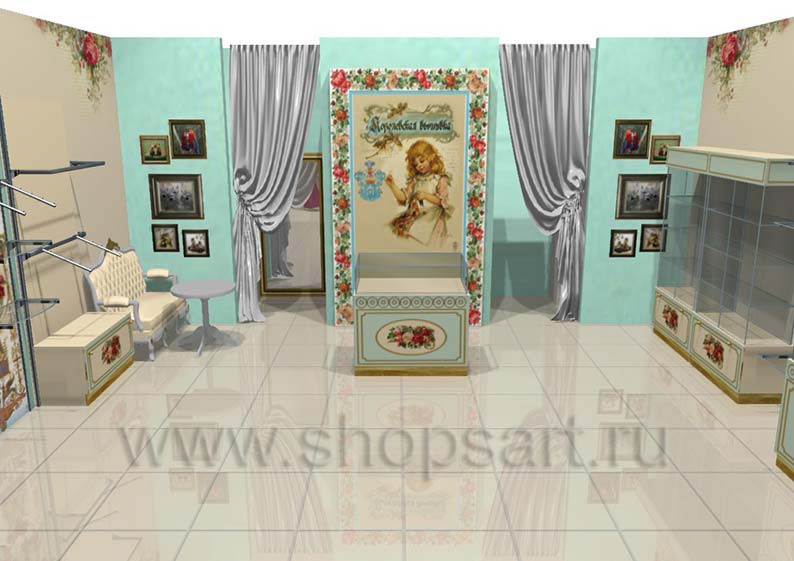 На этой странице Вы можете ознакомиться с дизайном интерьера детского магазина «Королевская вышивка», находящегося в городе Сочи, на основе коллекции торгового оборудования «ВИНТАЖ». Разработала дизайн магазина и дизайн торговой мебели компания «Искусство интерьеров». Узнать больше о наших коллекциях оборудования для детских магазинов Вы можете на странице торгового оборудования для детских магазинов.