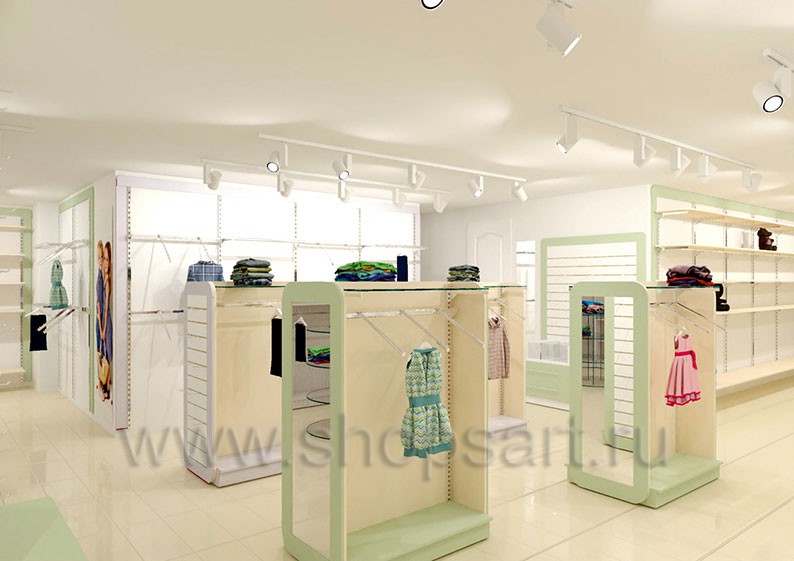 Дизайн-проект детского магазина одежды «ARTEL», г. Нижний Новгород, на основе коллекции торгового оборудования «АКВАРЕЛИ»