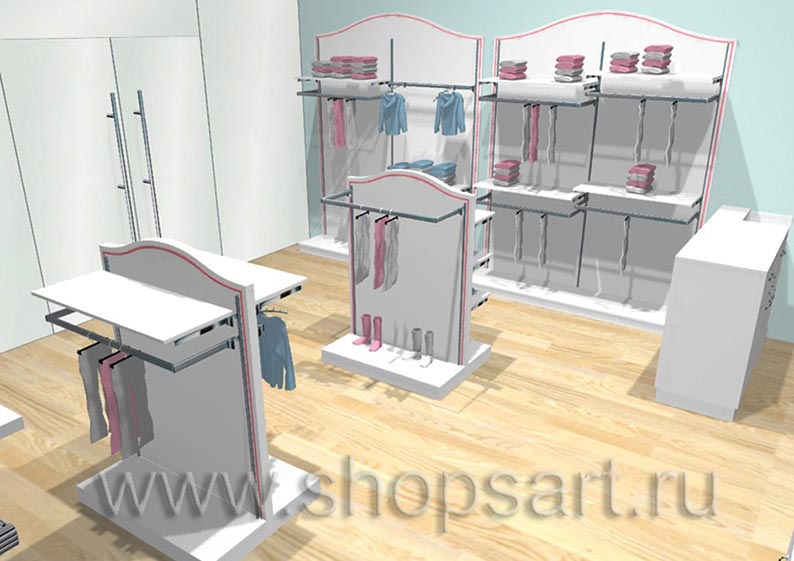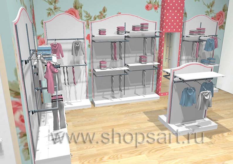 Оснащение оборудованием для продажи торгового зала должно быть достаточно чтобы свободно развесить и разложить детские товары. Когда изделия размещены слоями, посетителям затруднительно увидеть весь ассортимент. Для полноценного обзора им придется брать в руки каждую вещь, рассматривать её и обратно складывать на место. Изделия желательно презентовать таким образом, чтобы их можно было увидеть даже издали. Потому не стоит экономить, приобретая ограниченное количество торговой мебели.