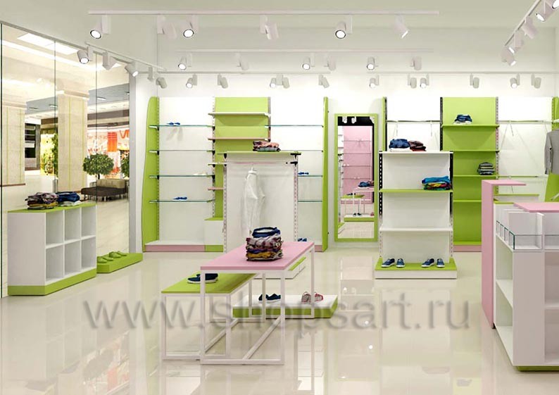 Конструкции серии «Розовая фантазия» — это верный путь к яркому и современному оформлению коммерческой площади. Мебель сочетает в себе ряд достоинств. Она удобна в использовании, практична, вместительна и прочна. Отдельно стоит сказать про суперстильный дизайн данного оборудования. Увидеть, как красиво смотрится торговая мебель серии «Розовая фантазия» и других коллекций, можно на фотографиях открытых магазинов детских товаров. Её можно заказать без опасений за здоровье юных посетителей, поскольку она производится из экологически безопасного ЛДСП. Рекомендуем посмотреть реализованные дизайн-проекты детских магазинов , в которых использовались коллекции нашего торгового оборудования.