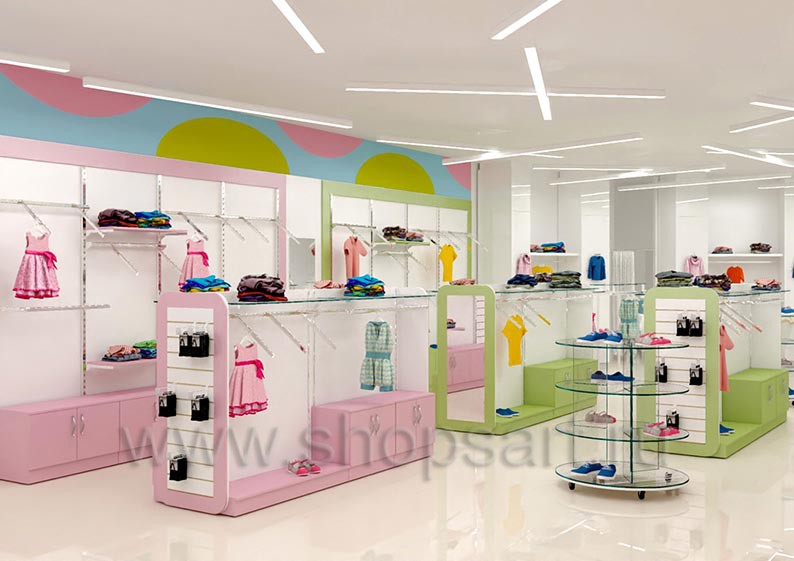 - Эстетику и удобство. Даже маленькие дети прекрасно чувствуют разницу между продуманным и безвкусно обставленным интерьером. Вообще, в любом ребенке заложено чувство прекрасного. Поэтому торговая мебель и декор в детском магазине должны непременно понравиться им.