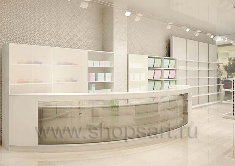Окрашенный МДФ, высокоглянцевый МДФ, ЛДСП, ЛДСП, отделка торговой мебели массивом дерева, стекло 8мм.