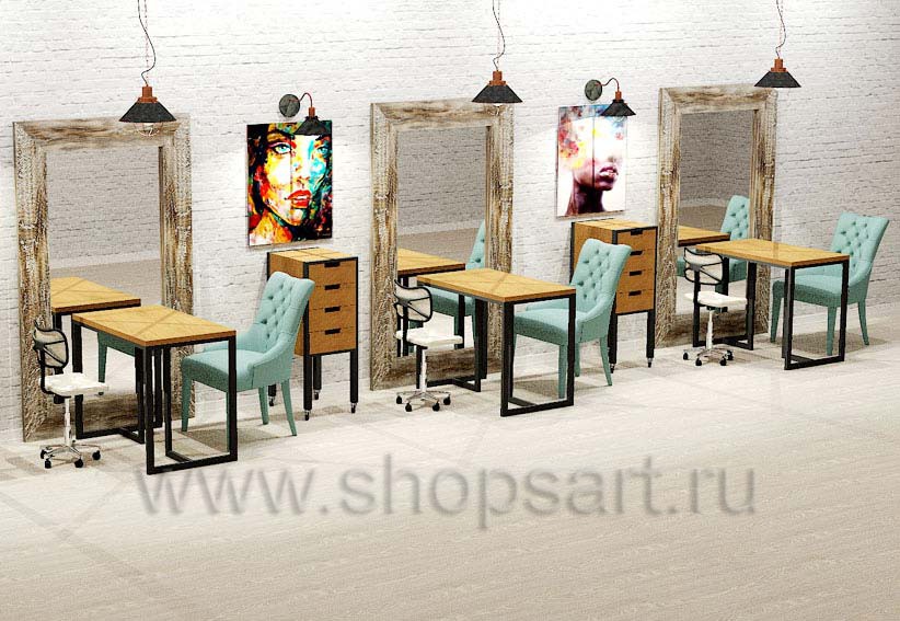 13 ЛОФТ салон. Комплект мебели для салона красоты с гримерным зеркалом.