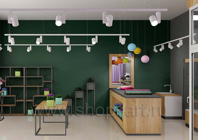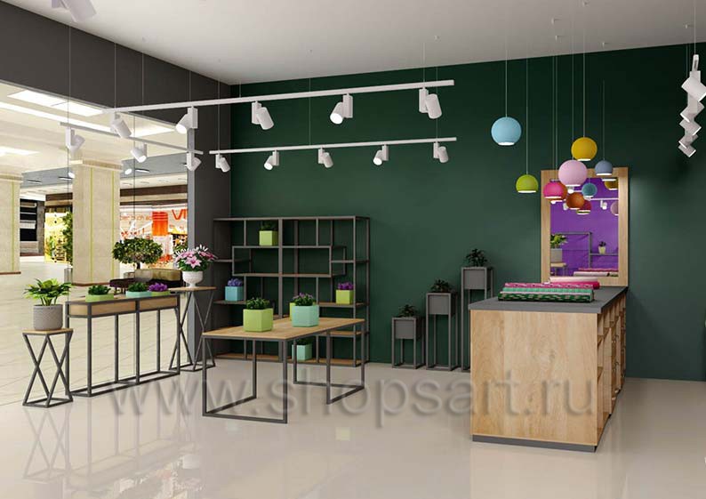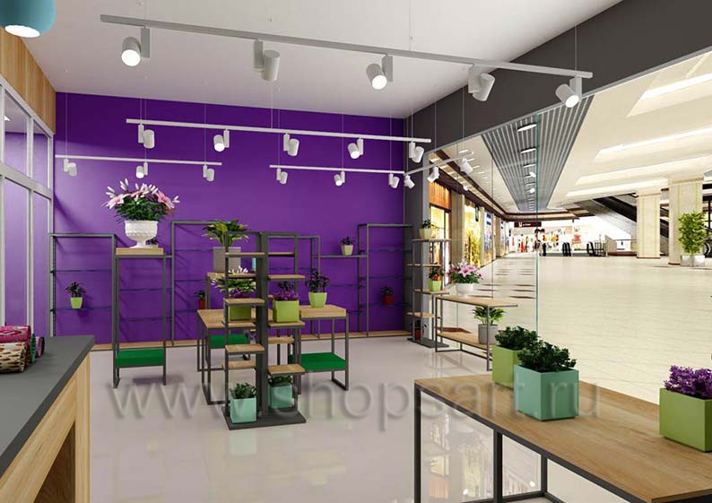 На этой странице Вы можете ознакомиться с дизайном интерьера и дизайном торговой мебели магазина цветов на основе коллекции торговой мебели «БУКЕТ». Разработала дизайн магазина цветов и торговой мебели компания «Искусство интерьеров».