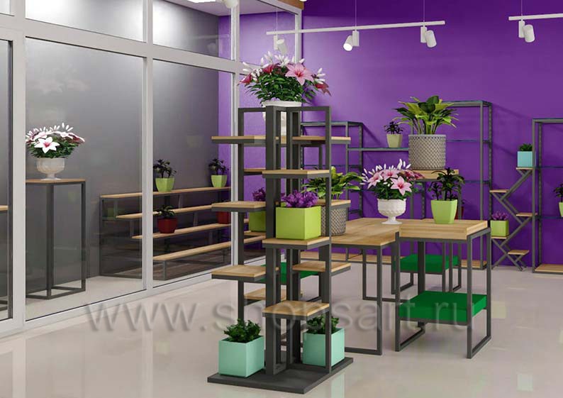 Одной из проблем, возникающих при оформлении коммерческого объекта по продаже цветов, является небольшая площадь помещений. На первый взгляд может показаться, что дизайн цветочного магазина маленьких размеров не является сложной задачей. Однако, учитывая желание современных потребителей внимательно изучать ассортимент товаров перед покупкой, им просто необходимо представить достаточно свободного пространства. Торговая мебель, используемая для размещения растений, должна иметь компактные размеры и не быть громоздкой. При этом нельзя экономить на качестве оборудования, ведь конструкциям предстоит выдерживать немалые весовые нагрузки.