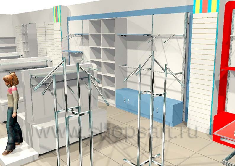 Торговое оборудование для магазинов одежды на основе коллекции ГОЛУБАЯ ЛАГУНА