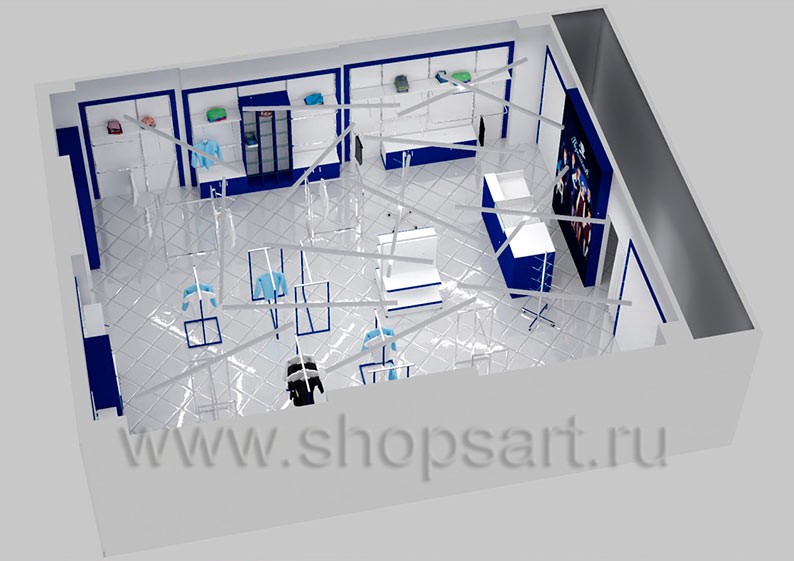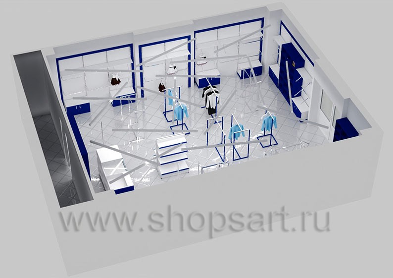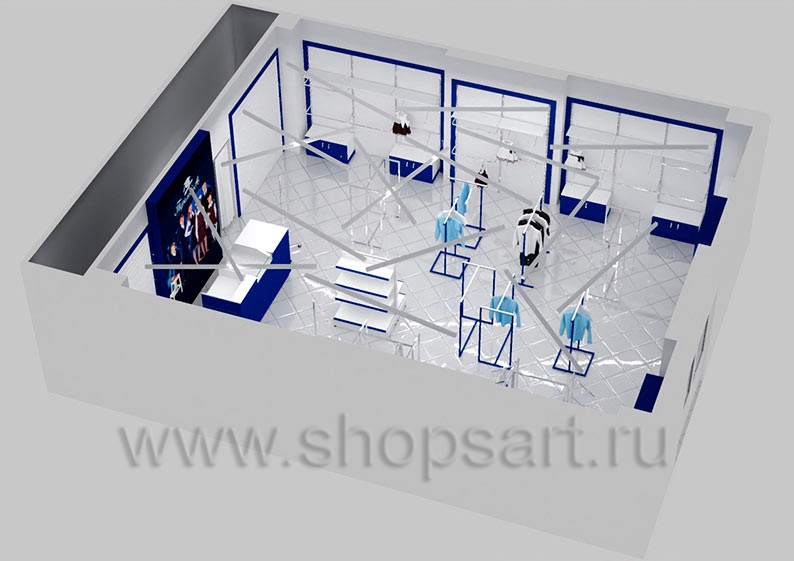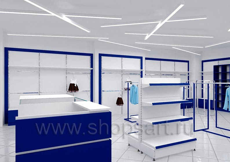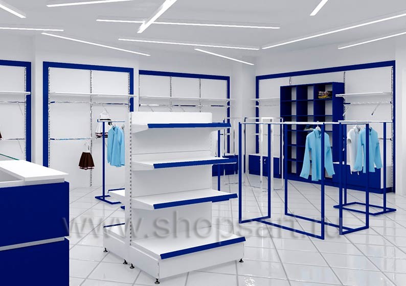 Торговое оборудование для магазинов одежды на основе коллекции ГОЛУБАЯ ЛАГУНА