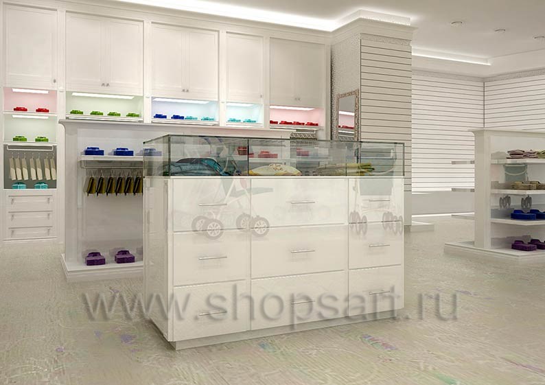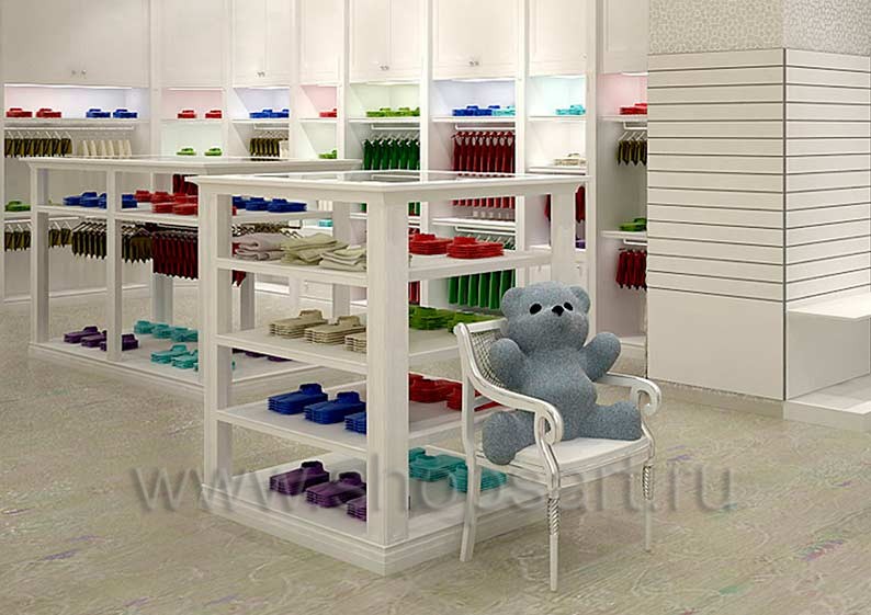 Торговая мебель для магазинов детской одежды коллекции БЕЛАЯ КЛАССИКА