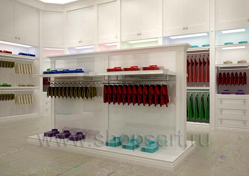Торговое оборудование для магазинов одежды на основе коллекции БЕЛАЯ КЛАССИКА