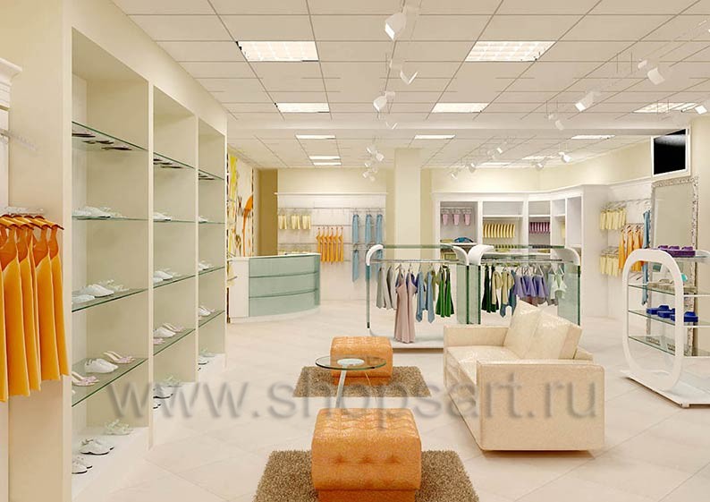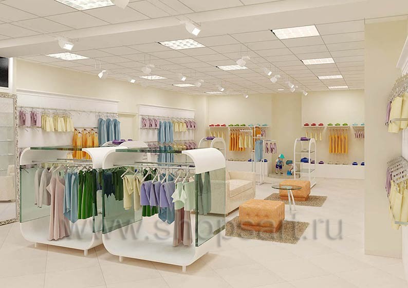 Прежде всего следует обозначить концепцию, которой нужно придерживаться при выборе тех или иных элементов интерьера. В каком бы стиле не был оформлен торговый зал, в конечном итоге в нем должна царить атмосфера детства. Это значит, что маленьким покупателям в магазине должно быть интересно, весело и беззаботно. Только в этом случае они не захотят его быстро покинуть, а позволят родителям спокойно выбрать нужные товары. Таким образом, привлекательный дизайн магазина одежды помогает развивать бизнес.