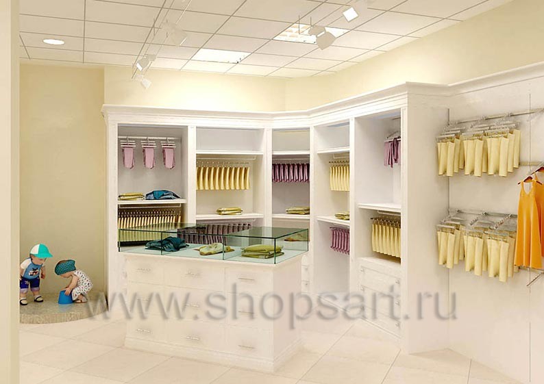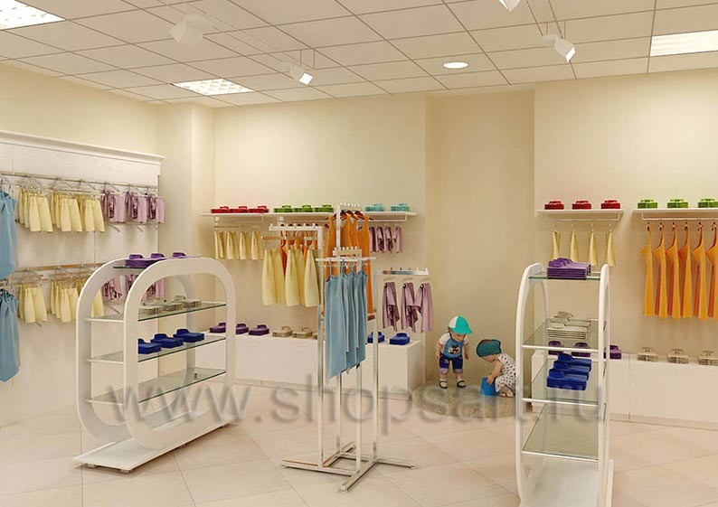 При установке торгового оборудования в магазине следует понимать, что детям необходим простор. Поэтому торговую мебель следует использовать в меру, чтобы не загромождать всю территорию коммерческого помещения. Такой подход обеспечит малышам и родителям удобный доступ к моделям одежды.