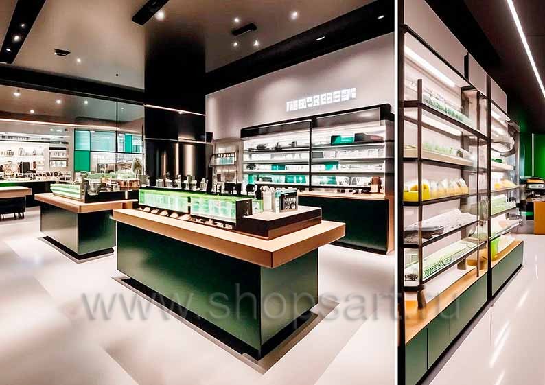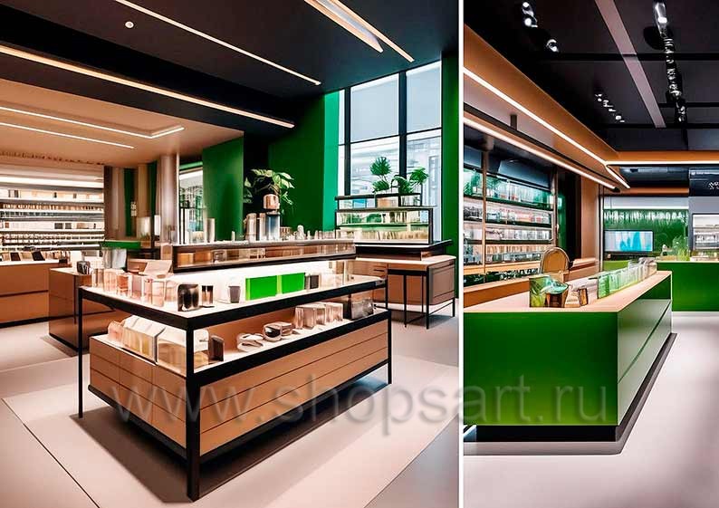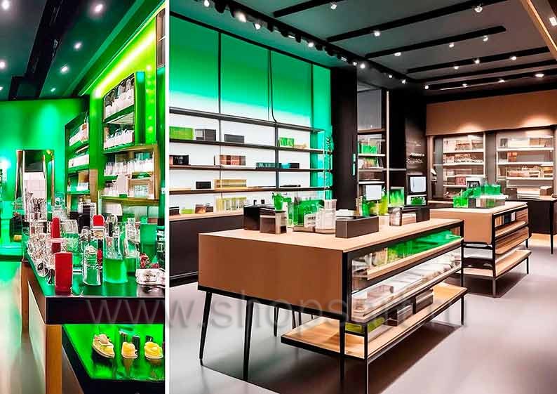 Торговая мебель в дизайне магазина косметики