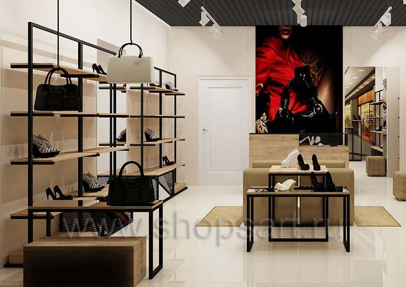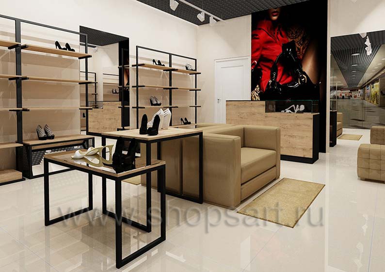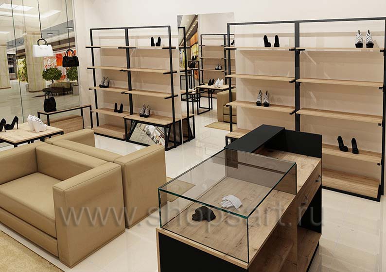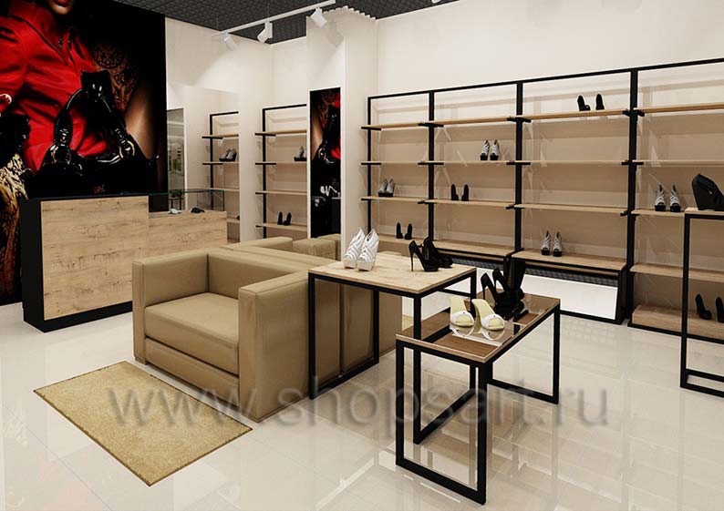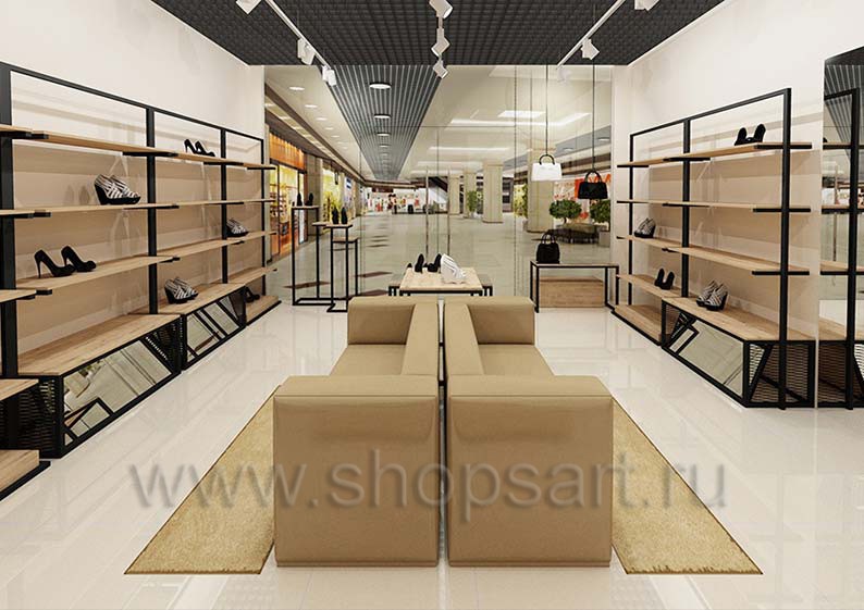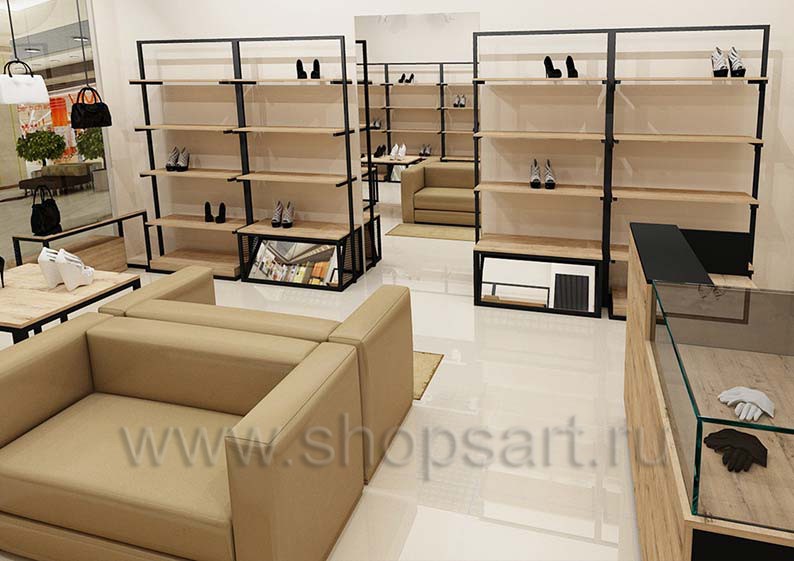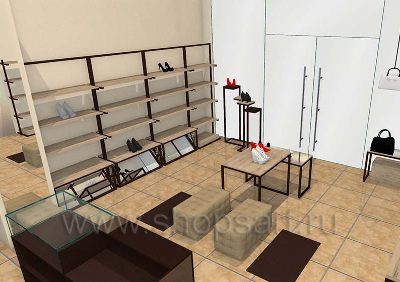Дизайн проект магазина обуви на основе коллекции торгового оборудования СТИЛЬ ЛОФТ