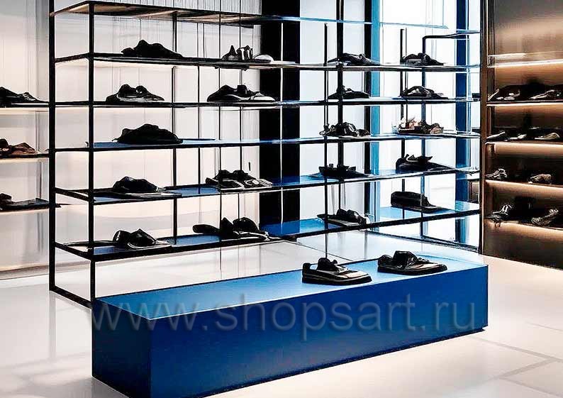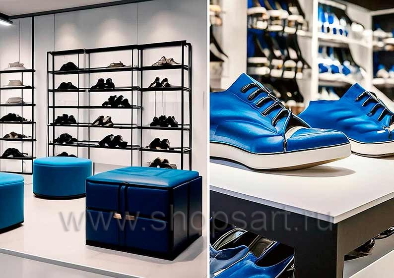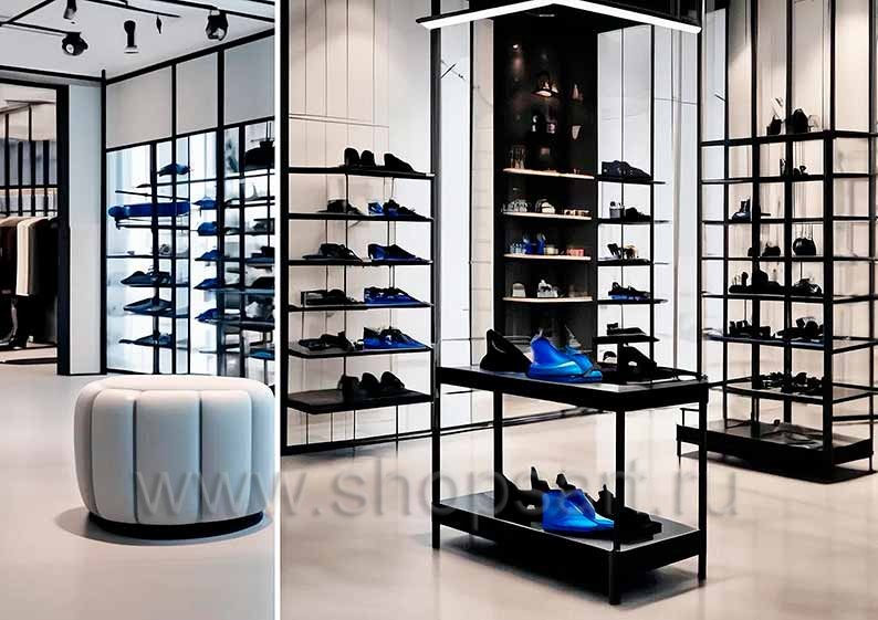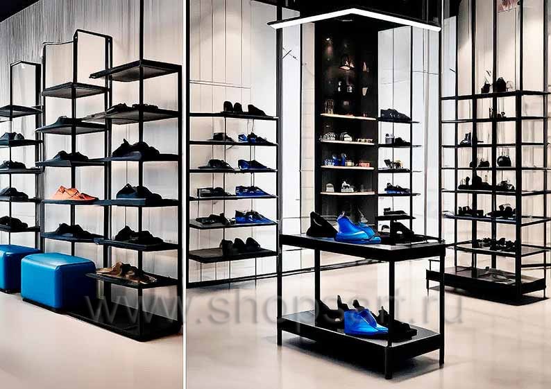 Фотографии торгового оборудования в открытых магазинах обуви на основе коллекции СТИЛЬ ЛОФТ