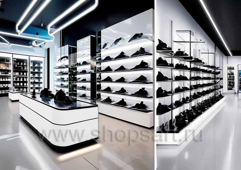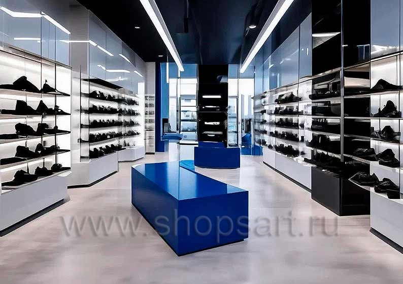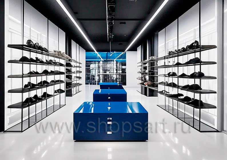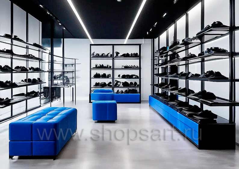 Дизайн проект магазина обуви на основе коллекции торгового оборудования СТИЛЬ ЛОФТ