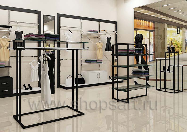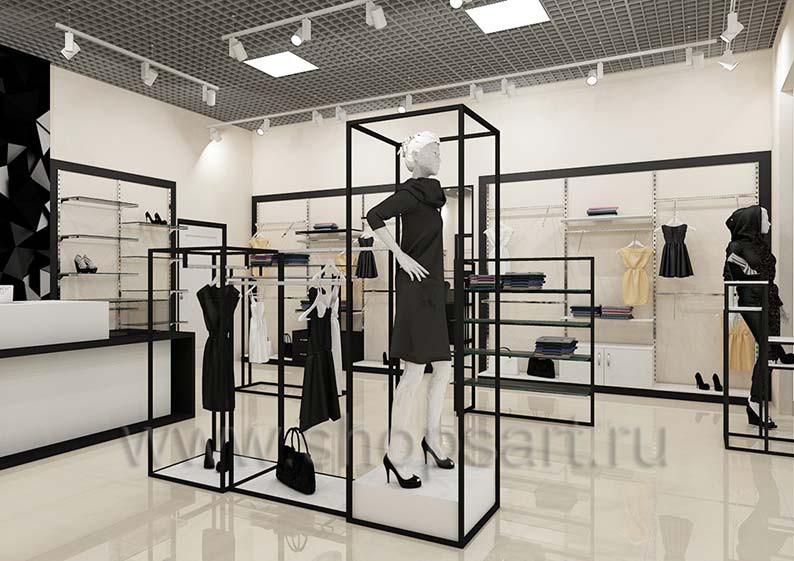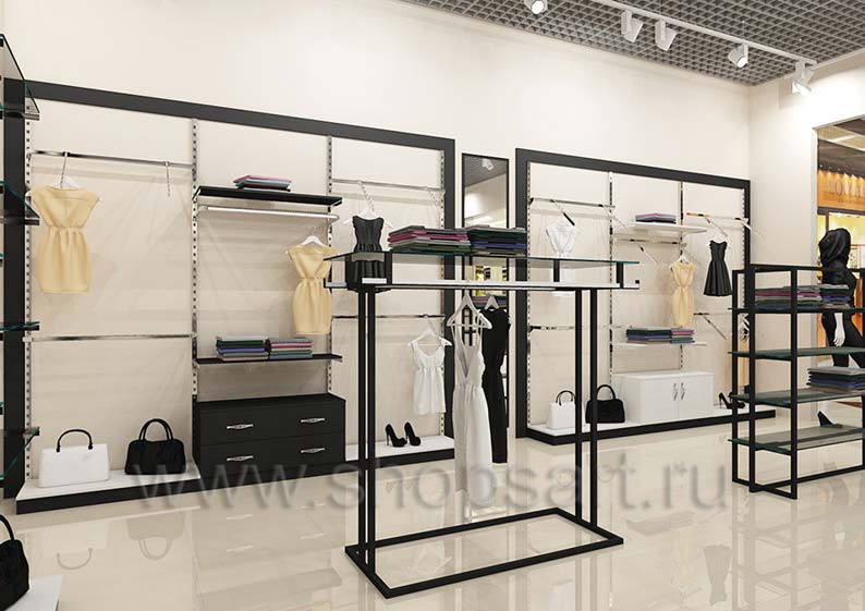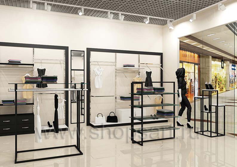 Торговое оборудование для магазинов одежды на основе коллекции ЧЕРНО БЕЛАЯ КЛАССИКА