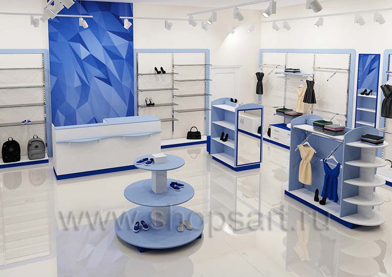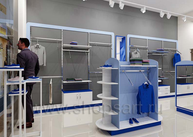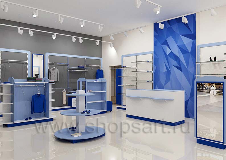 Торговое оборудование для магазинов одежды на основе коллекции ГОЛУБАЯ ЛАГУНА