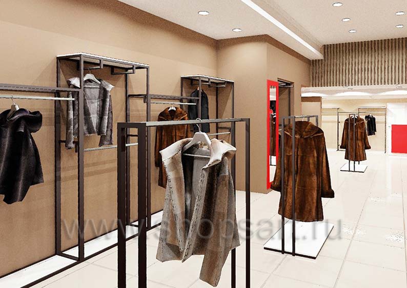Если вам нужен индивидуальный мебельный стиль лофт для одежды, наши специалисты готовы взяться за разработку оригинальных моделей торгового оборудования согласно вашим предпочтениям. Необычный дизайн помещения выигрышно выделит его среди других салонов шуб.