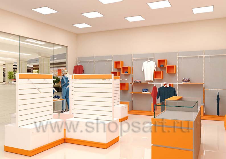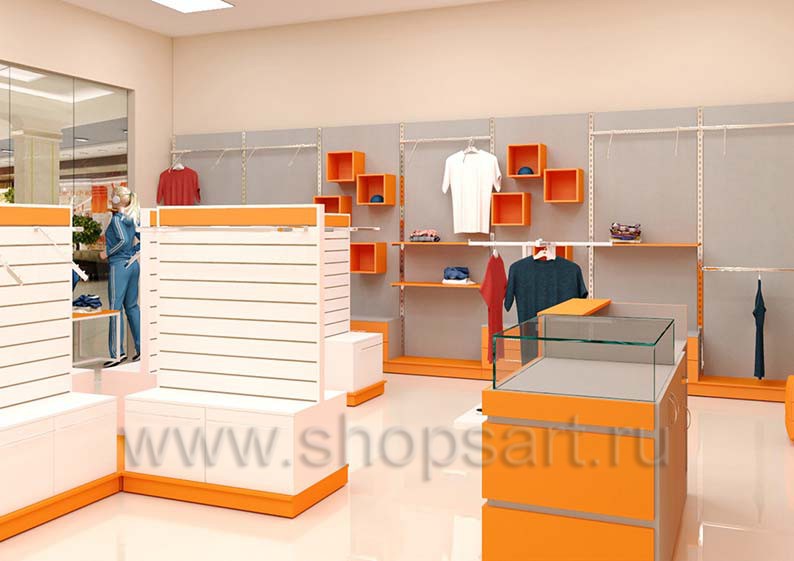 Торговое оборудование для магазинов спортивной одежды на основе коллекции АТЛАНТ