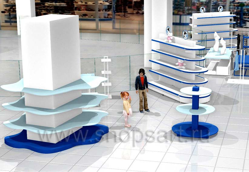 Металлические элементы покрывают порошковой краской. В оформлении магазинов используют материалы разных цветов с учетом заранее созданного дизайна. Выдерживается единая цветовая концепция. Размеры мебели определяются индивидуально, как и состав мебельного набора.