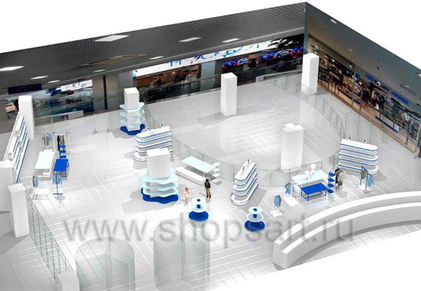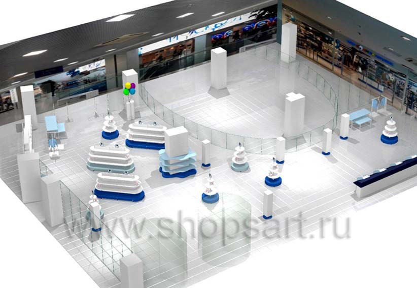 Компания "Искусство интерьеров" использовала базовую коллекцию мебели для производства торговых стеллажей. Изготовление торгового оборудования также потребовало полной разработки дизайна интерьера.