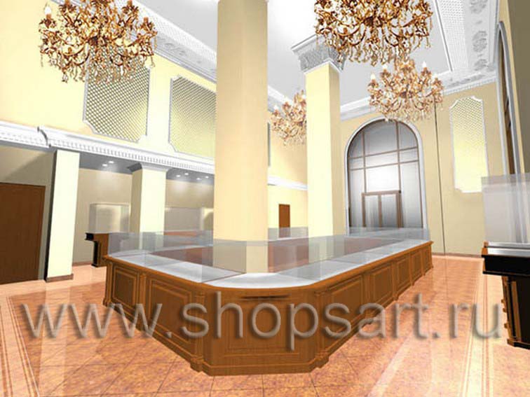- Дизайн интерьера ювелирного магазина, г. Москва, пр. Мира, на основе коллекции торгового оборудования «КОРИЧНЕВАЯ КЛАССИКА». Дизайн 3.