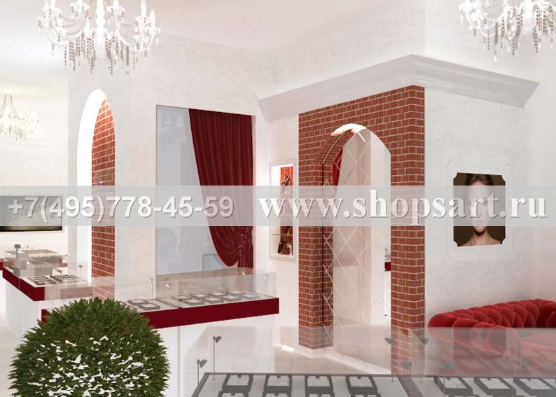 - Дизайн интерьера ювелирного магазина “Кремлёв” в ТРЦ «Авиапарк», г. Москва, на основе коллекции торгового оборудования «КРЕМЛЁВСКОЕ ЗОЛОТО». Дизайн 4.