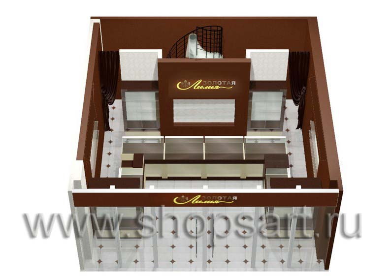 - Дизайн интерьера ювелирного магазина “Золотая Лилия”, г. Москва, на основе коллекции торгового оборудования «ЭТАЛОН». Дизайн 2.