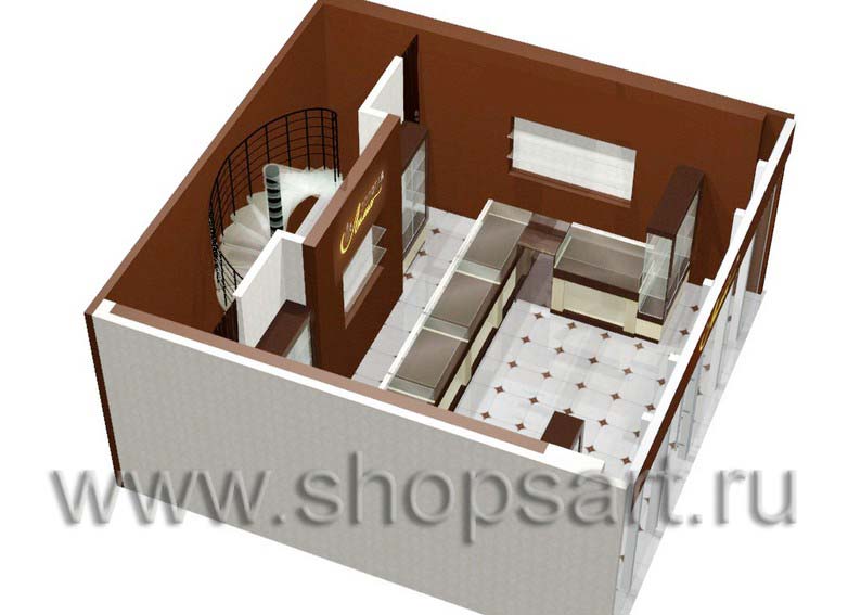 - Дизайн интерьера ювелирного магазина “Золотая Лилия”, г. Москва, на основе коллекции торгового оборудования «ЭТАЛОН». Дизайн 3.
