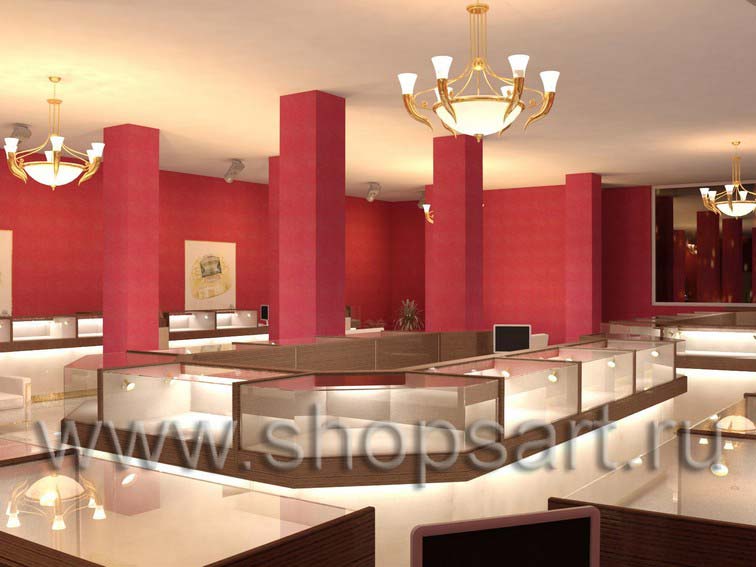 На этой странице Вы можете ознакомиться с первым дизайном интерьера, выполненным в красном цвете отделки помещения ювелирного магазина «Золото Якутии», находящегося в городе Якутск, на основе коллекции торгового оборудования «КОФЕ С МОЛОКОМ». Разработала дизайн магазина и дизайн торговой мебели компания «Искусство интерьеров». Узнать больше о наших коллекциях мебели для ювелирных магазинов Вы можете на странице торгового оборудования для ювелирных магазинов.