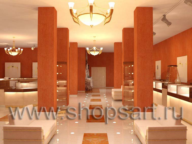 - Дизайн интерьера ювелирного магазина “Золото Якутии”, г. Якутск, на основе коллекции торгового оборудования «КОФЕ С МОЛОКОМ». Дизайн 2.