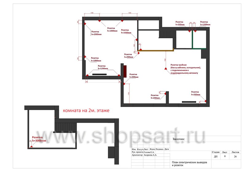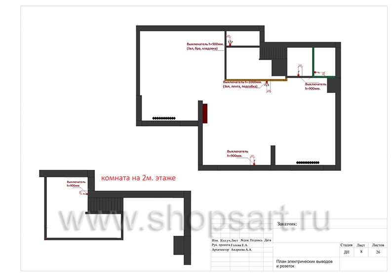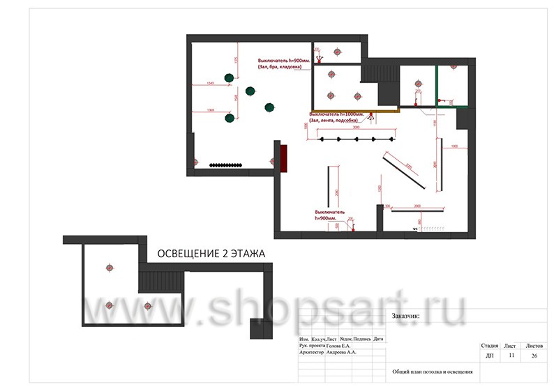2. Управление освещением дистанционное — выключателями, через магнитные пускатели по группам. Блок выключателей располагается в зоне входа в подсобное помещение.