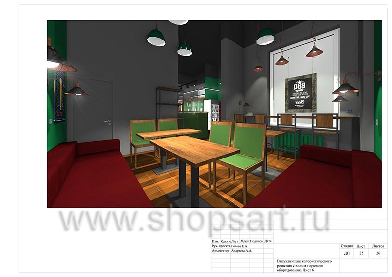 - 25. 3D визуализация колористического решения интерьера с видом оборудования 6.