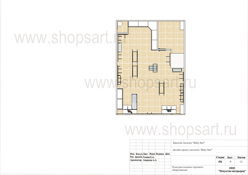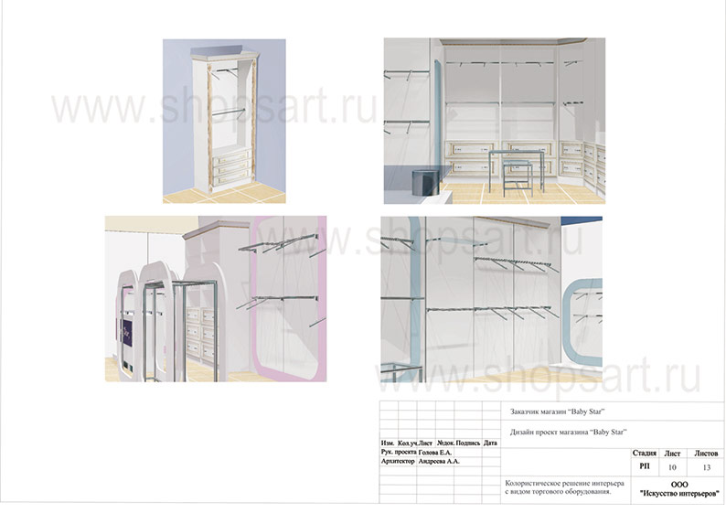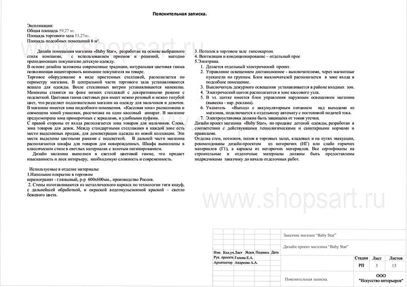 Дизайн проект магазина «Baby Star», по продаже детской одежды, разработан в соответствии с действующими технологическими и санитарными нормами и правилами.