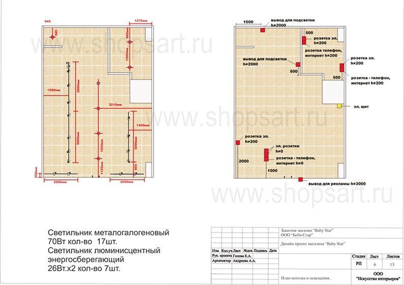 - 7. План расстановки торгового оборудования и осветительных приборов.